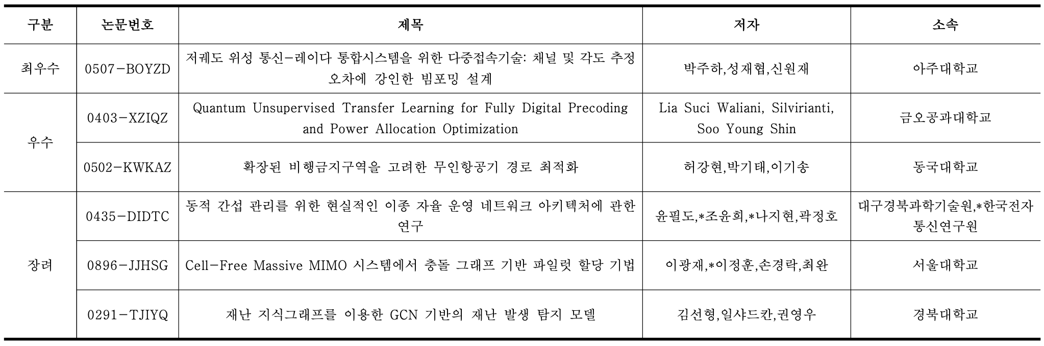 · 시상식 참석 안내는 논문 제출자에게 개별 연락 예정