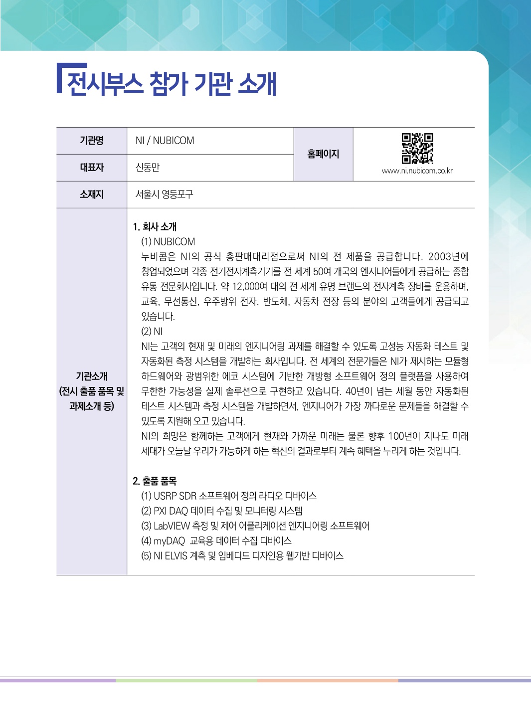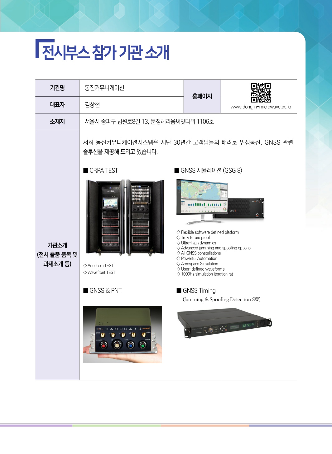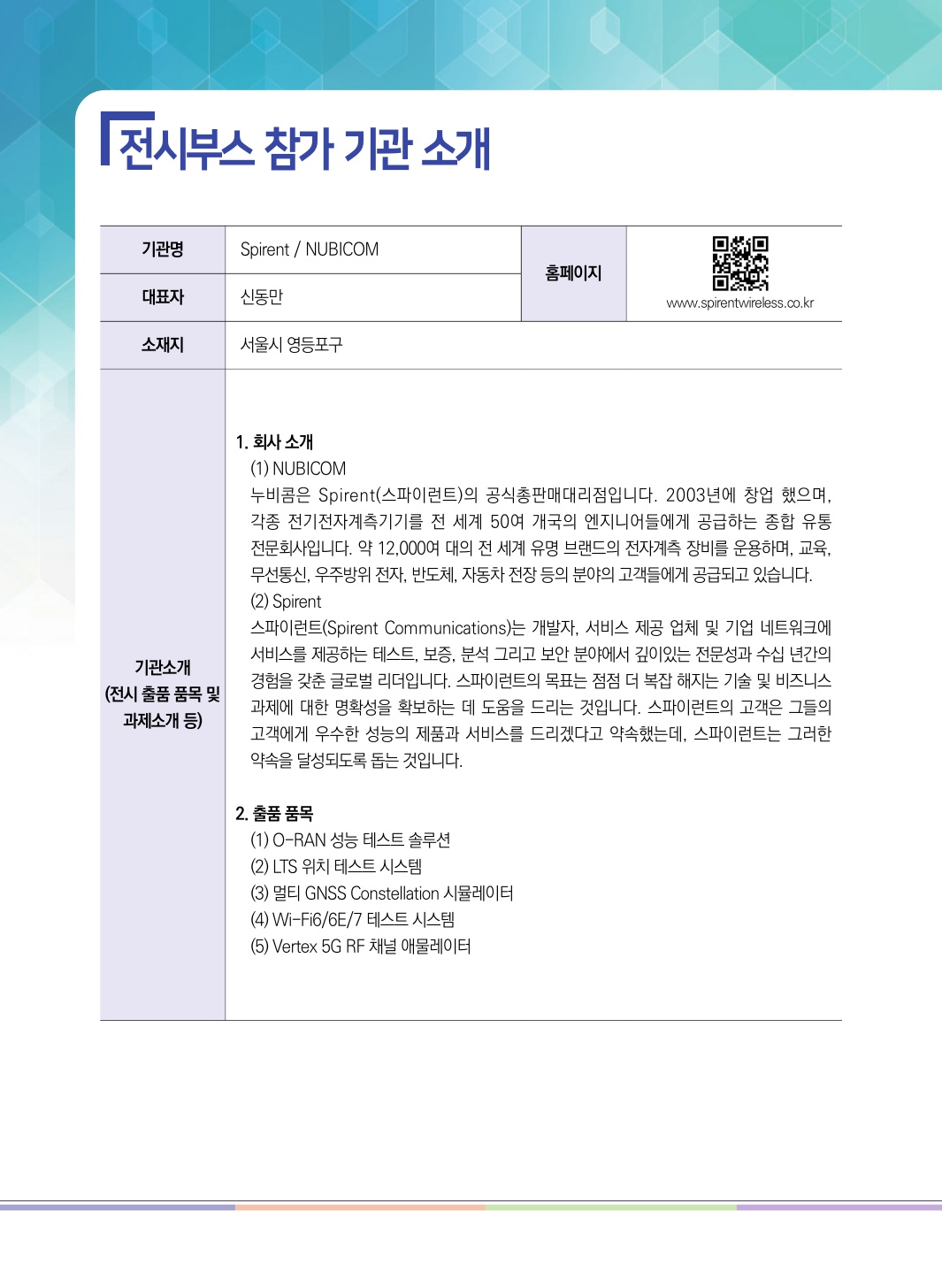 · 참여기업 : 동진커뮤니케이션, 주식회사 에티포스, NI, Spirent, NUBICOM