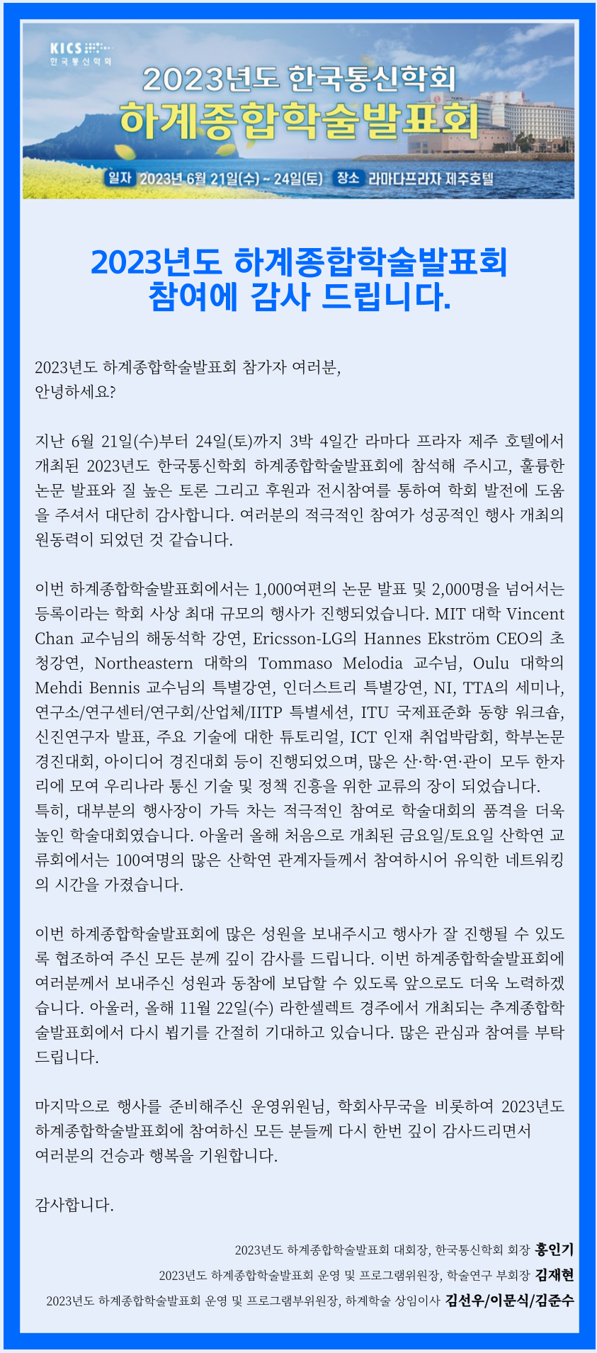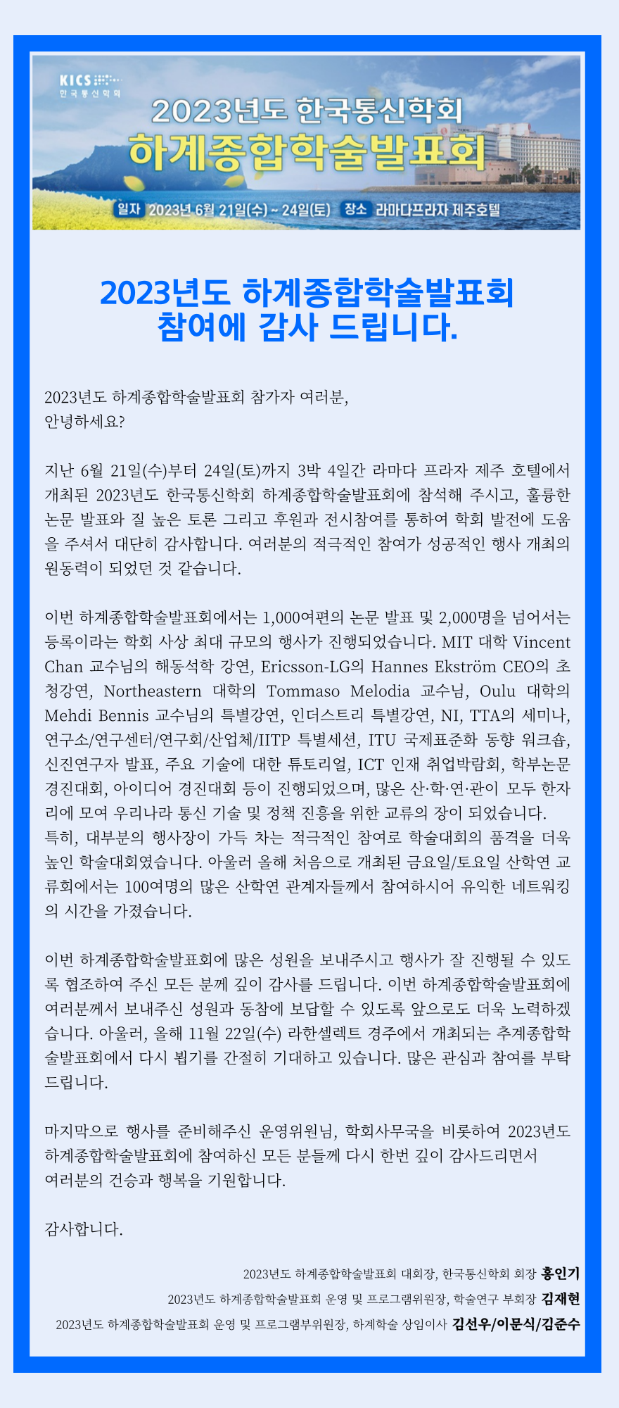 2023년도 하계종합학술발표회 참여에 감사 드립니다.